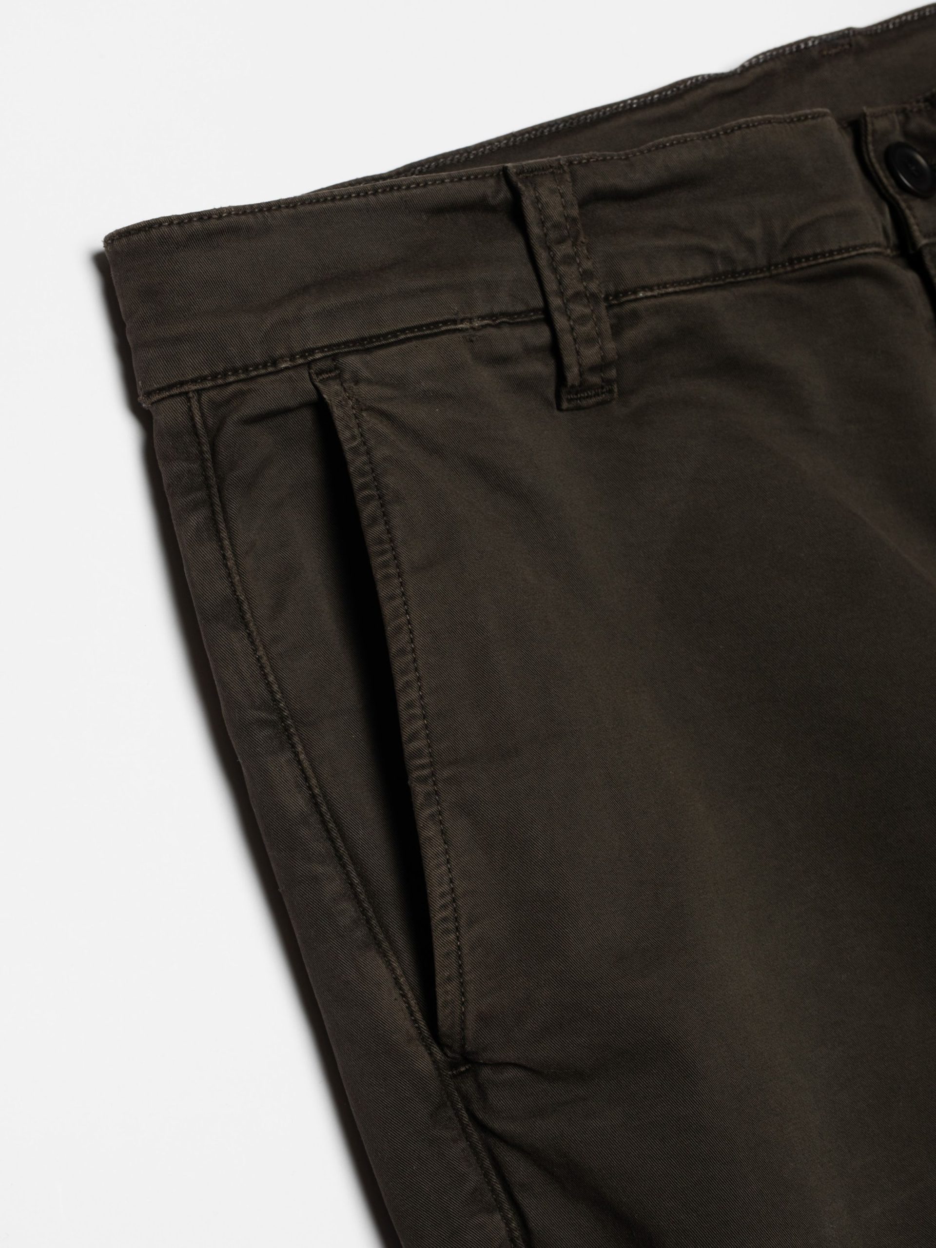 Slim fit four-pocket chino made in a clean 11.7 oz. organic comfort stretch twill. With its slanted front pockets, welt back pockets, chain stitch hems, and slim tapered fit it is a contemporary classic. If you ask us it is the perfect slim fit chino – fitted with a bit of room around the legs, making it look neat and fit very comfortably. Its sewn with heavy tone-in-tone thread with medium-short stitch length which emphasizes its clean construction and pays homage to its workwear heritage.