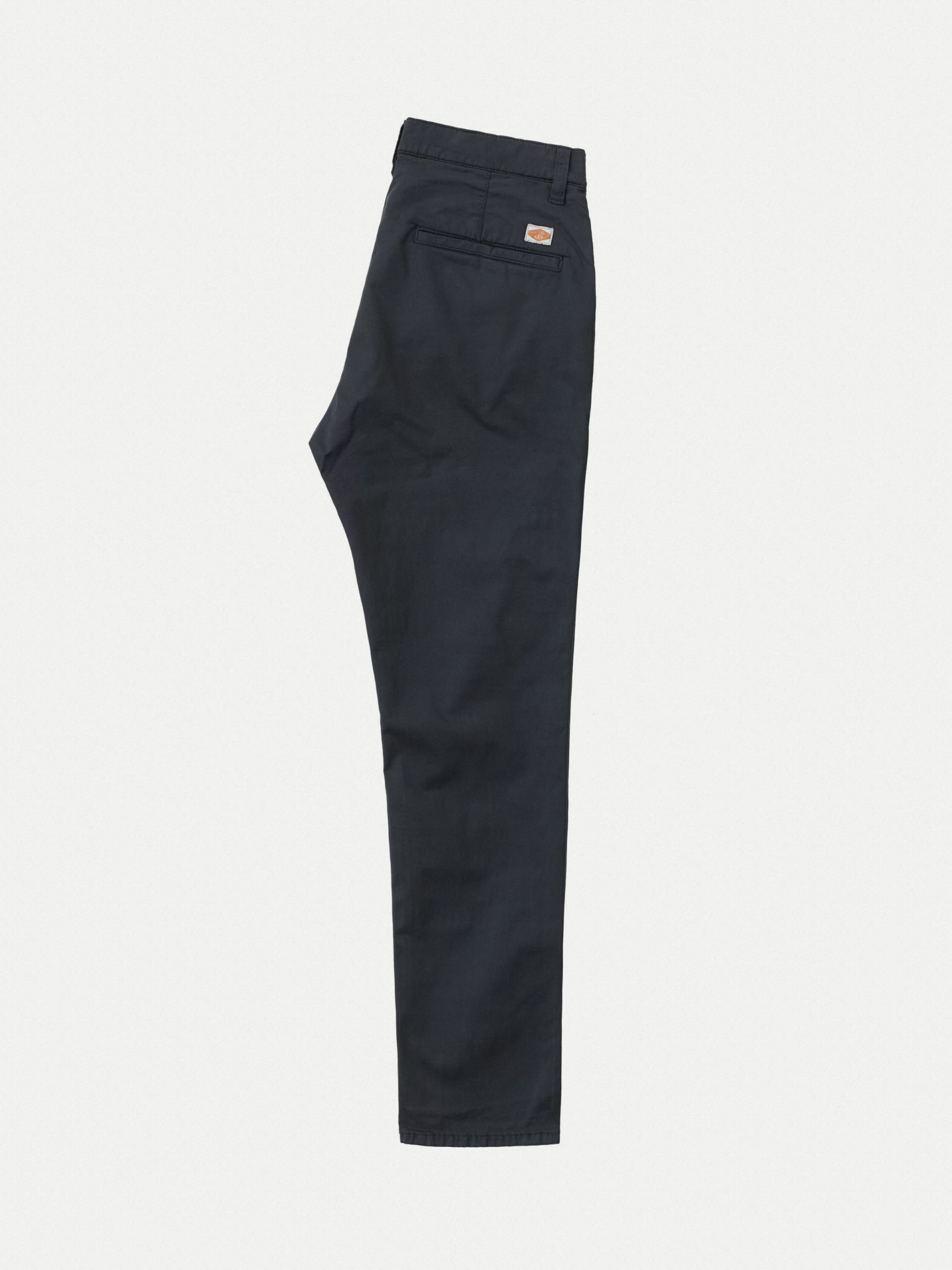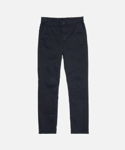 Slim fit four-pocket chino made in a clean organic comfort stretch twill.