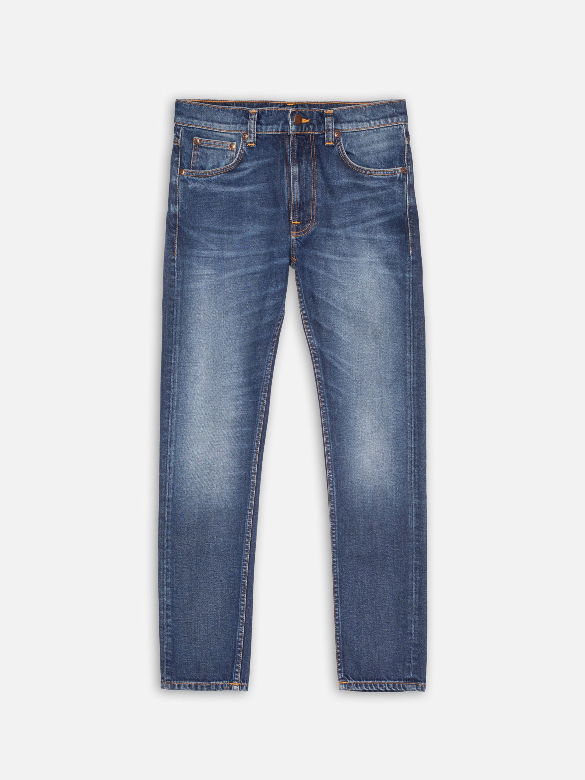 Tapered slim-fit stretch jeans in an authentic wash with a superb balance between dark blue and greyish hints. Made from organic cotton.